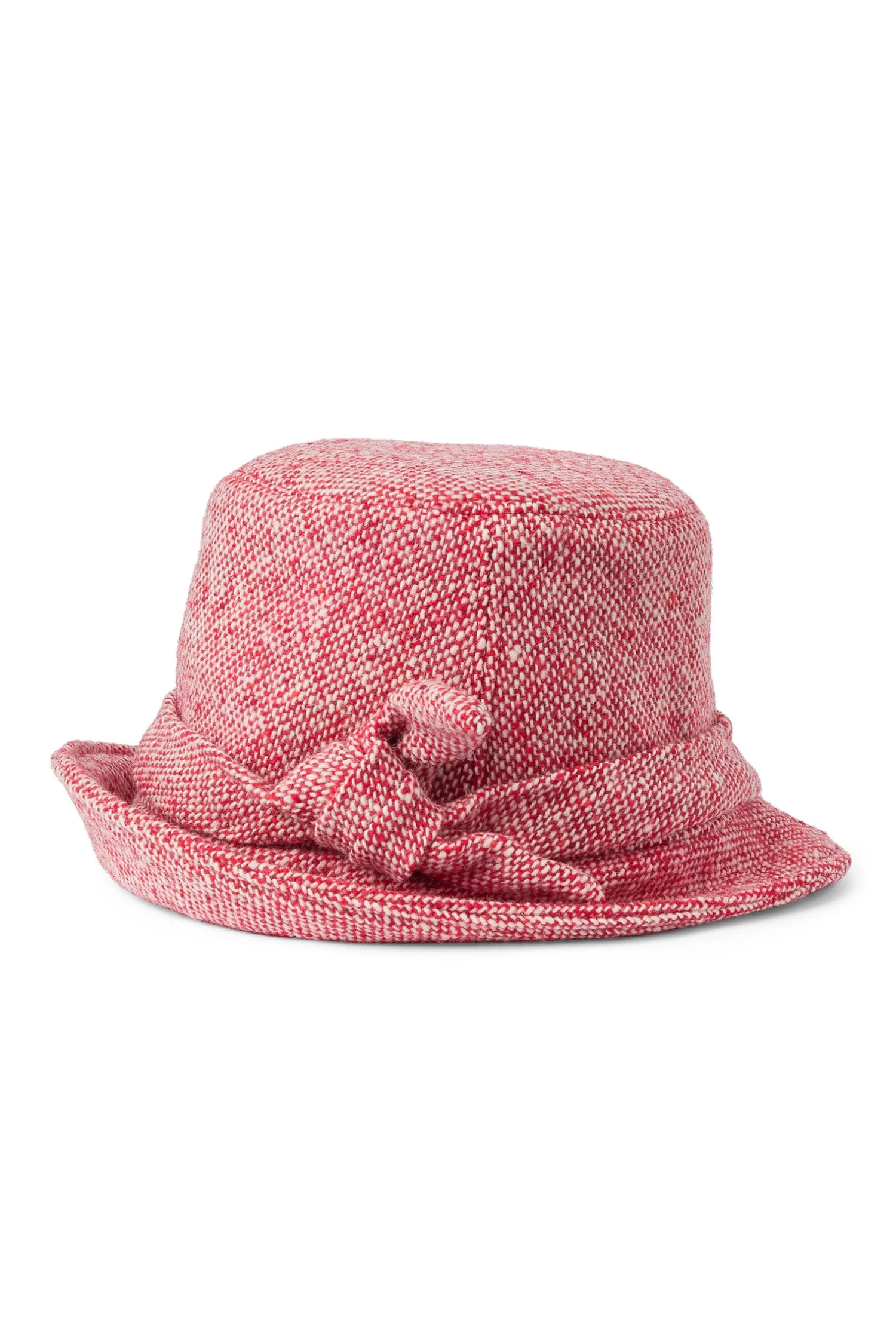 The red woven tweed Dolores cloche has a flattering upturned brim that frames the face beautifully.Â