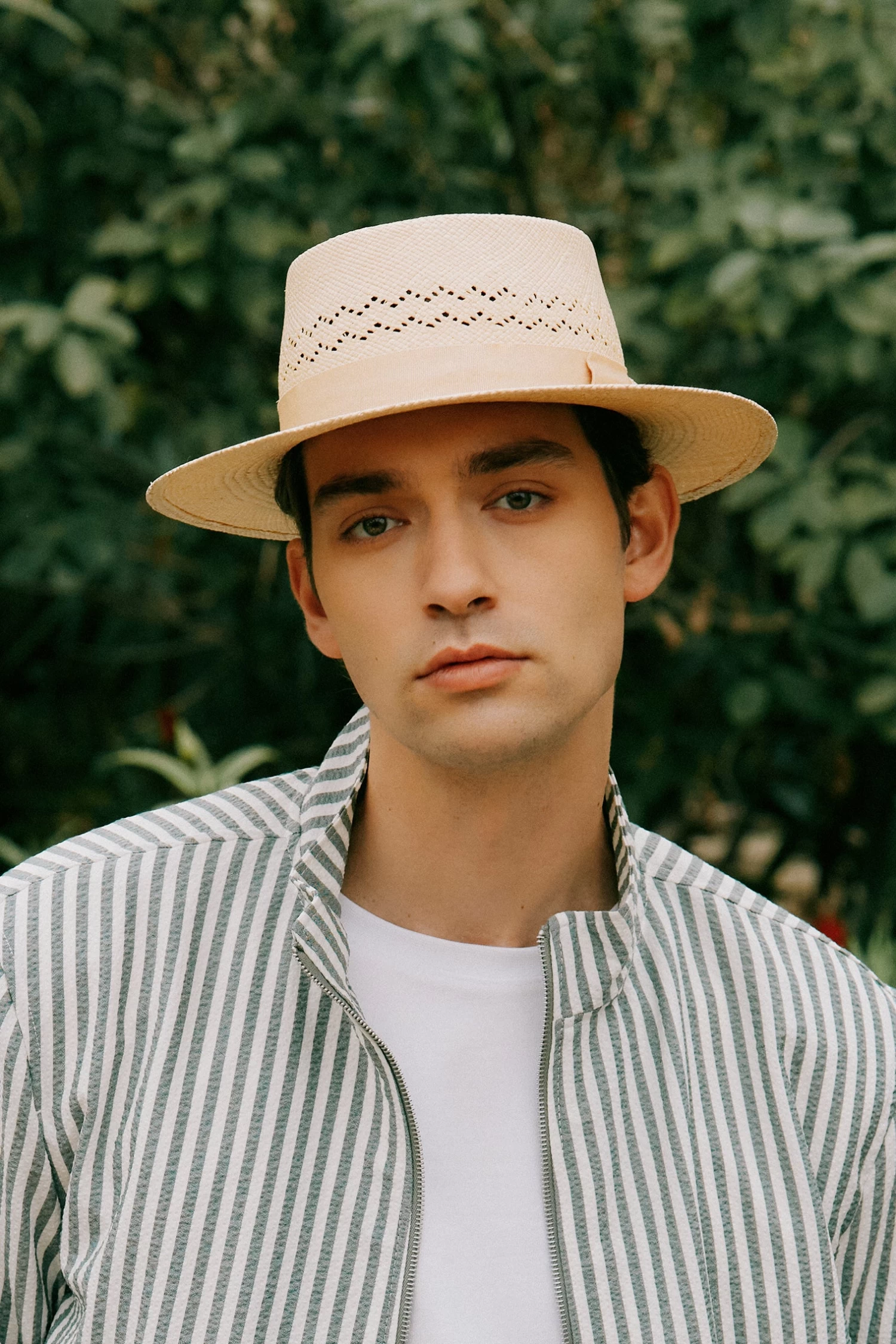 A spring and summer sartorial staple, this take on the classic Panama offers a pork-pie hat style that retains its natural colouring and is truly a timeless piece. Lightweight, this hat keeps you cool even in warmer climates.