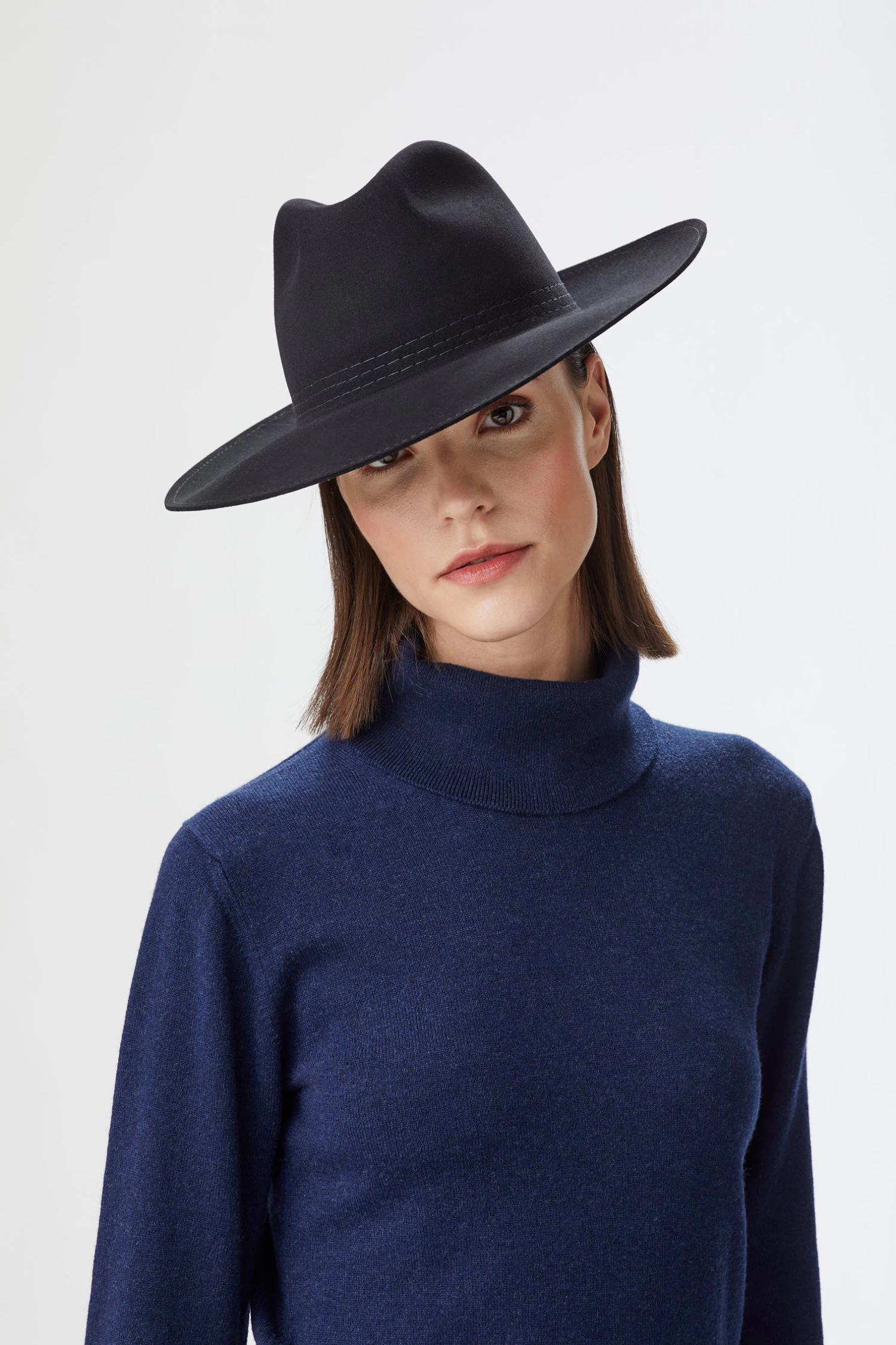 A wide-brimmed wool felt fedora that packs a serious fashion punch for the cooler months.