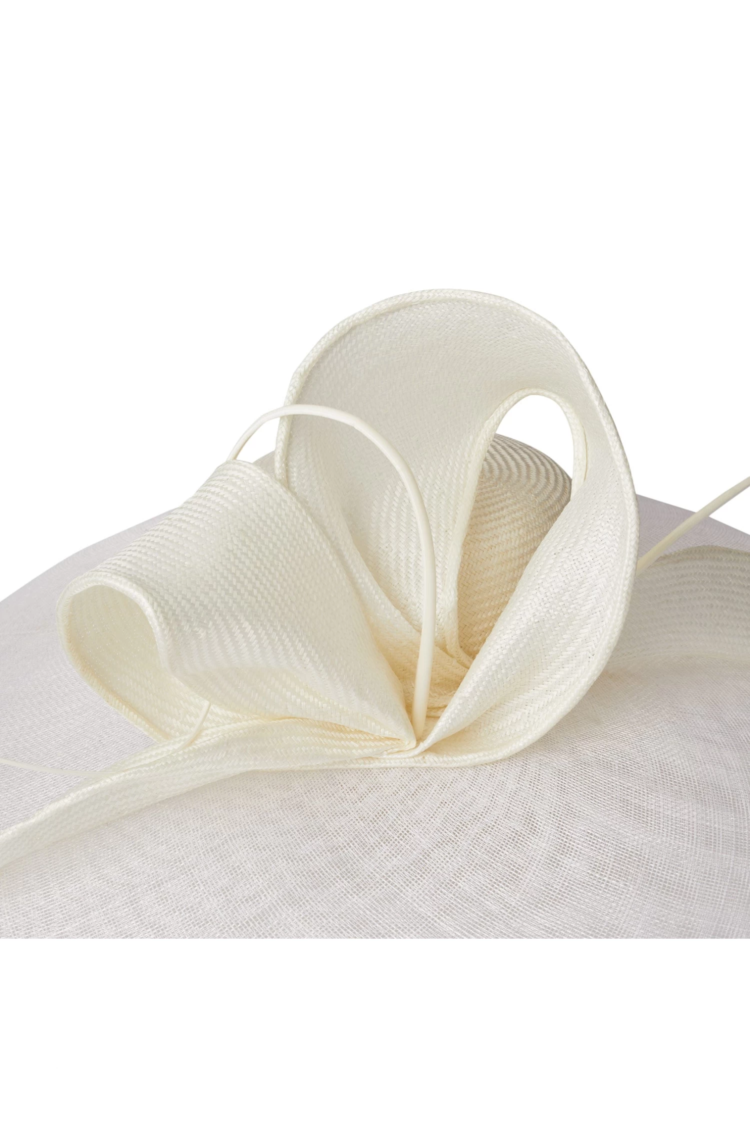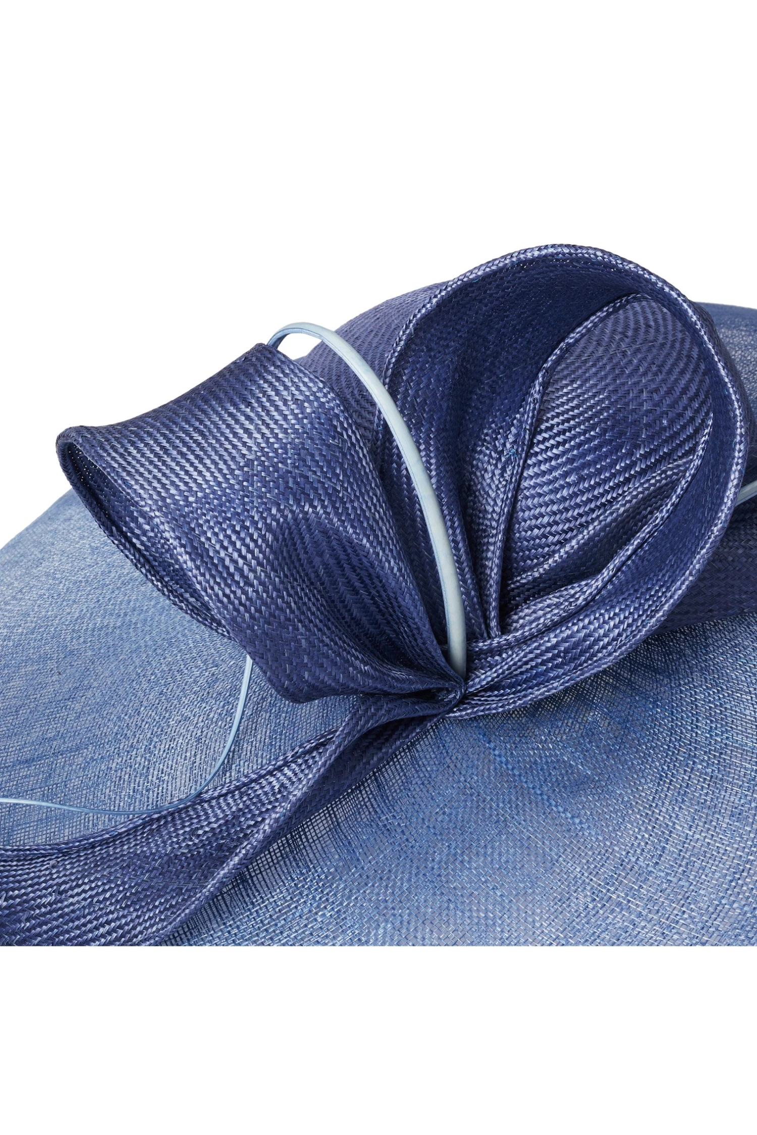 Mojave is a stunning couture picture hat crafted in sinamay and parasisal with an elaborate hand-shaped sweeping parasisal bow and stripped ostrich quill detailing.