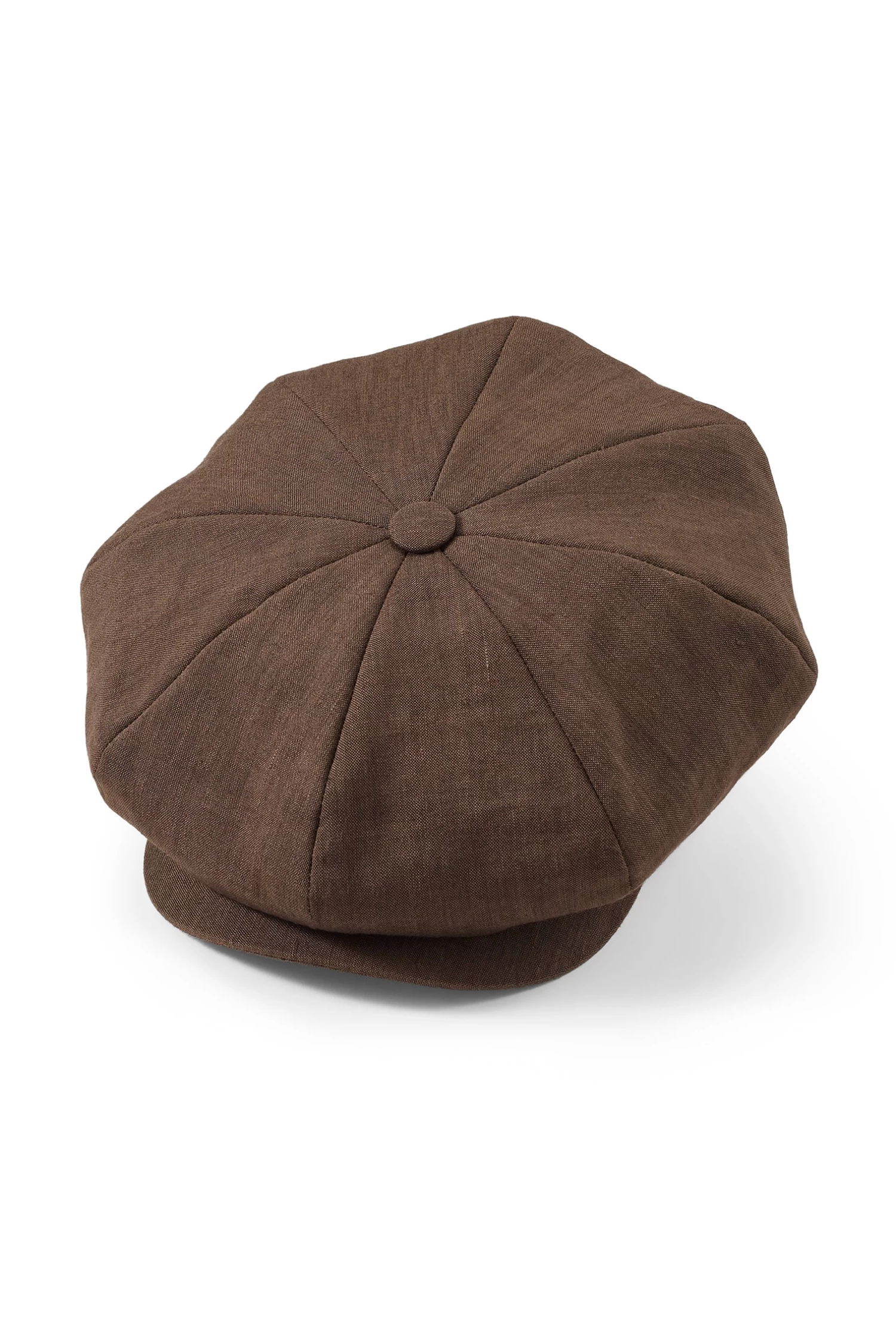 The Muirfield Brown Bakerboy Cap has been reimagined in a lighter mix of mohair and linen to suit the warmer months. This fuller-shaped cap is finished inside with a cotton lining.Â
