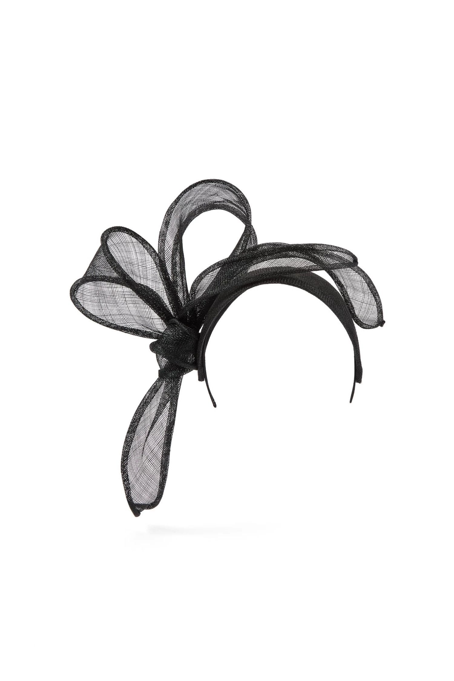 The Rosemary black headband is a versatile statement piece featuring swooping sinamay swirls on a wiredbase and headband.