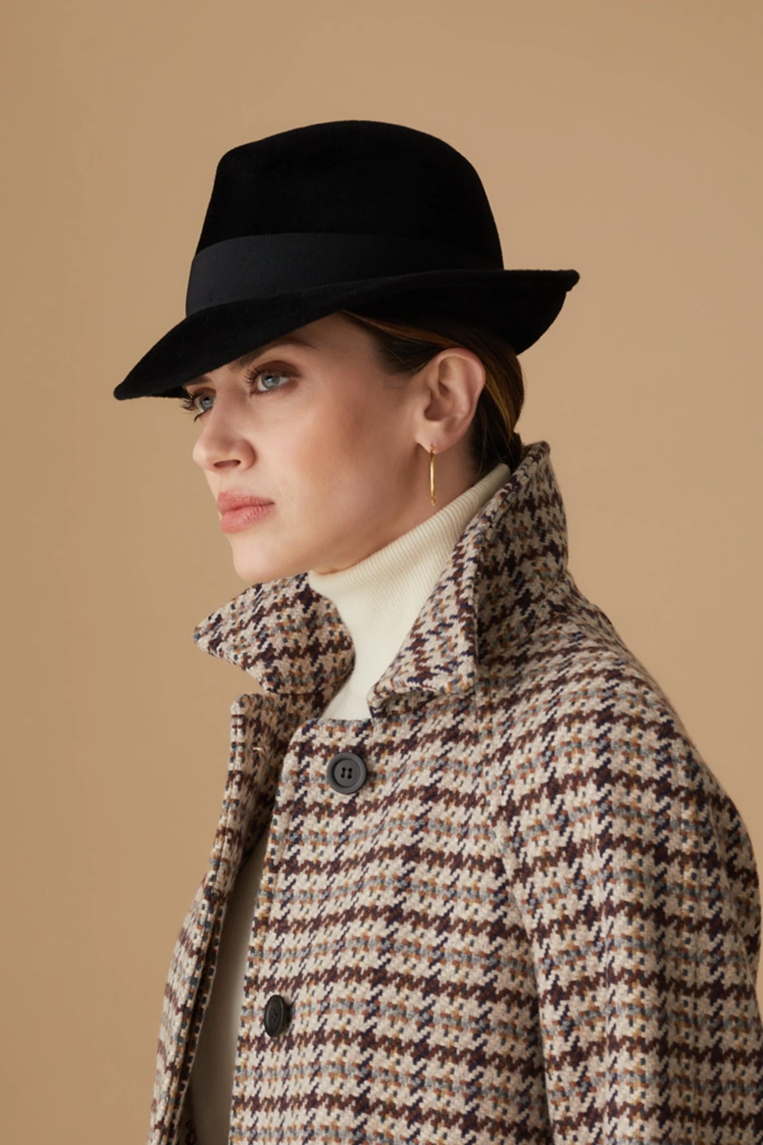 This Vesper-Lynd-inspired trilby is made from luxurious velour felt and has a narrow brim.Â